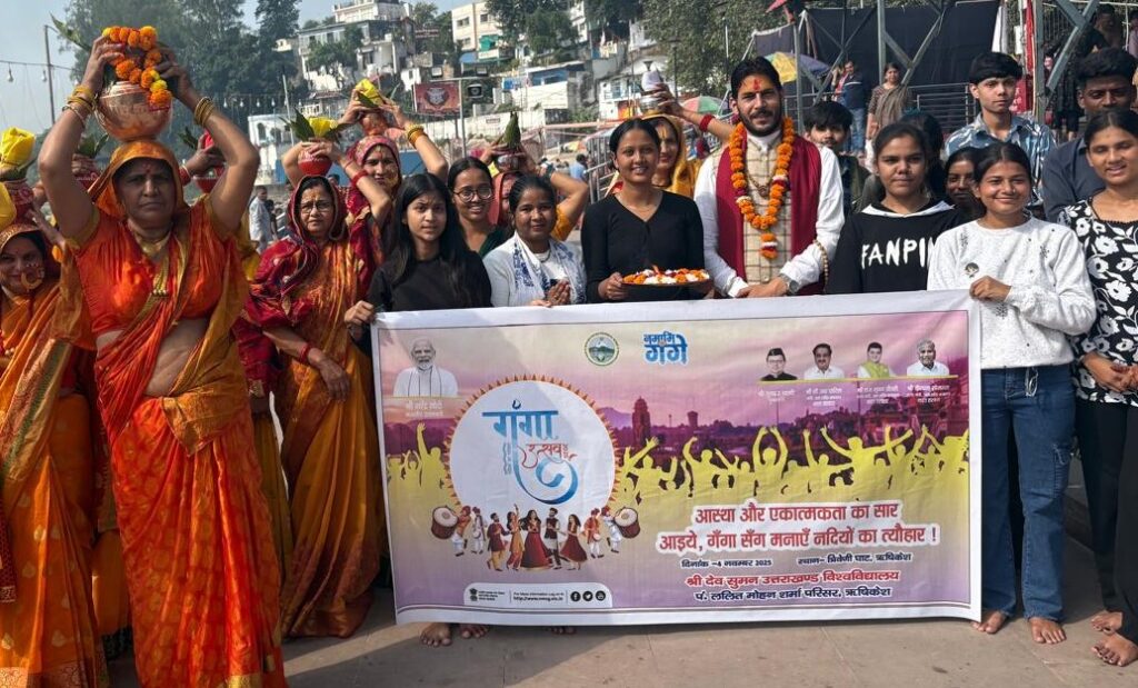 ऋषिकेश। पण्डित ललित मोहन शर्मा श्रीदेव सुमन उत्तराखंड विश्व विद्यालय परिसर, ऋषिकेश में नमामि गंगे प्रकोष्ठ, कार्यालय कार्यक्रम निदेशक राज्य गंगा स्वच्छता मिशन नमामि गंगे उत्तराखंड देहरादून एवं जल शक्ति मंत्रालय भारत सरकार के संयुक्त तत्वाधान में त्रिवेणी घाट पर गंगा उत्सव का भव्य आयोजन किया गया।